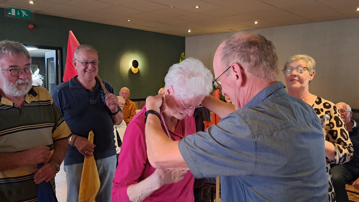 Met de kermis op de achtergrond vond er in zaal "De Dijk" een daverend kleintje kermis plaats, georganiseerd door de Activiteitencommissie van de Seniorenvereniging. Rond de 60 leden waren aanwezig om de nieuwe koning of koningin te huldigen. Vooraf was het prijsschieten (darten) waarbij de oude koninging wederom hoge ogen gooide. Ze won namelijk de prijs. Wat een talent!!